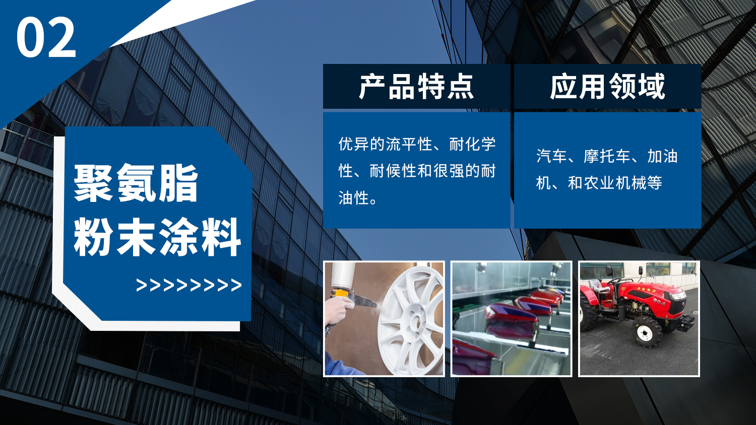 廣泛應(yīng)用于家用電器、汽車(chē)、建材、散熱器、自行車(chē)、汽車(chē)、家具、健身器材、管道等諸多領(lǐng)域,根據(jù)各個(gè)領(lǐng)域產(chǎn)品的表面涂裝的不同要求,為其量身定做設(shè)計(jì),批量生產(chǎn)不同系列產(chǎn)品。產(chǎn)品以優(yōu)異的性能,穩(wěn)定的品質(zhì)享譽(yù)全省、暢銷(xiāo)全國(guó),并逐步走向國(guó)際市場(chǎng)。